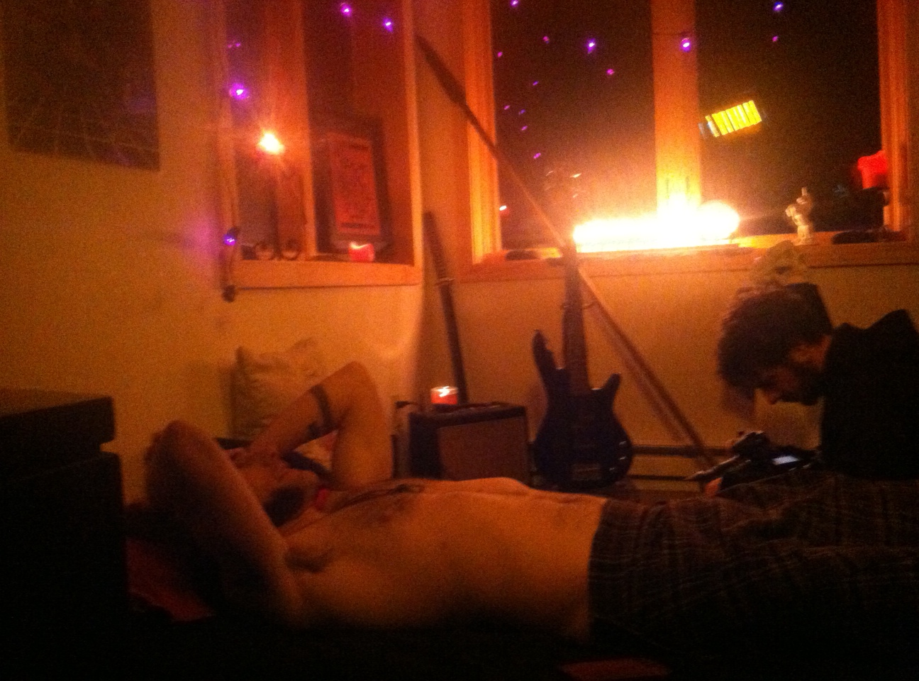 That bright glare in the back is a butt-load of candles for use in Rob’s daily Satanic rituals.